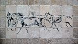 "Running Horses" Tumbled Marble Tile Mural by EquuStone. Horse Image by Equine Artist Pat Stebbins. Kitchen Backsplash, Bathroom Wall Tiles.